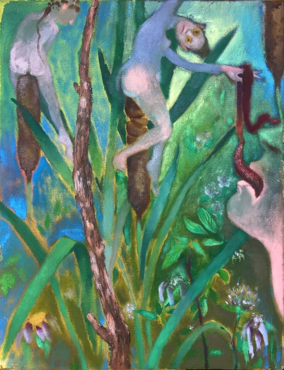 There’s a thread of personal narrative running through my work, but for the most part I’m thinking about a parallel space that is reminiscent of but not morally subjugated by ours. In terms of gender, the figures are fluid. The groupings represent protection and exploration.