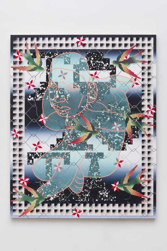 An important aspect of my identity as an artist comes from my experience as a working class laborer. My work in construction and in commercial art utilized grids as functional layout tools but as I incorporated them into my work the use of grids evolved to reflect a deeper meaning to me. The grid symbolizes modernity, and the myth of progress through capitalist enterprise that inherently commodifies and dehumanizes human labor. Another driving force in my technique is inspired by decorative aspects of commonplace everyday life, for example the decoration in window grills and patterns in chain-link fence, textiles and the commonplace things that I’m exposed to in my neighborhood and community.