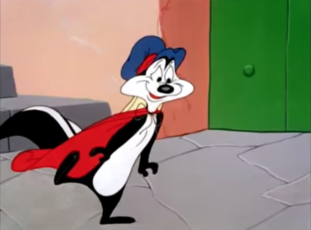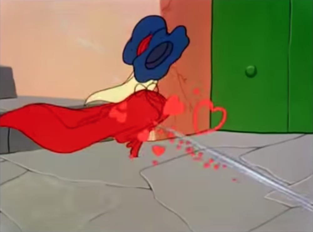 I began making this body of work my last year in school. It was a tough year, a lot of unexpected deaths and heart break. I kept coming back to clothing– how it stands in for the body, and its emotional properties once the person is no longer wearing it. I was also drawing a lot of visual material from old cartoons. There was one clip in particular that stuck with me. Pepe Le Pew is in disguise attempting to catch Penelope. Before he can grab her, she runs away. For a few seconds his disguise floats in the air as he chases after her.