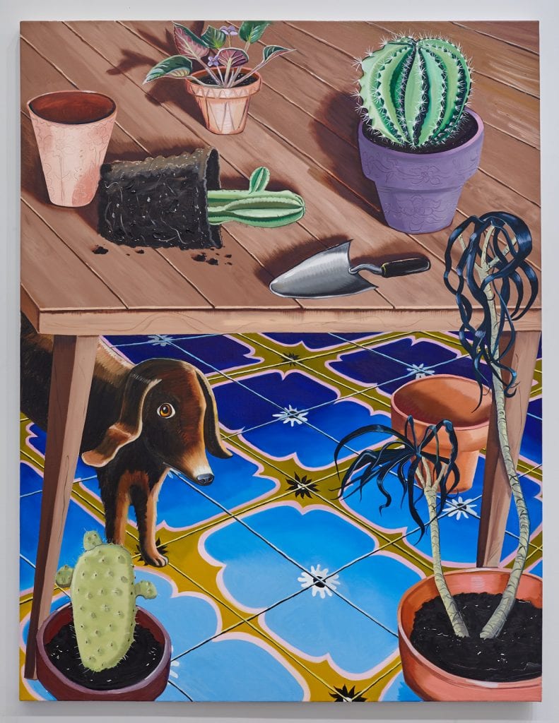 I find myself jumping between different mediums as a way of keeping myself excited and engaged all the time (which can be a challenge). I see each medium as having their own strengths and they definitely inform each other constantly. I think of the works on paper as a method to take the pressure off and get back to a more basic way of making an image. I find that since I’ve started including collage in my practice, there are moments of collage-like layering in the paintings. I’ve also noticed that my increased interest in more precise drawings has led to a heightened level of detail in my paintings. The gradual changes that happen from these relationships with the different mediums is one of my favorite aspects of making art.